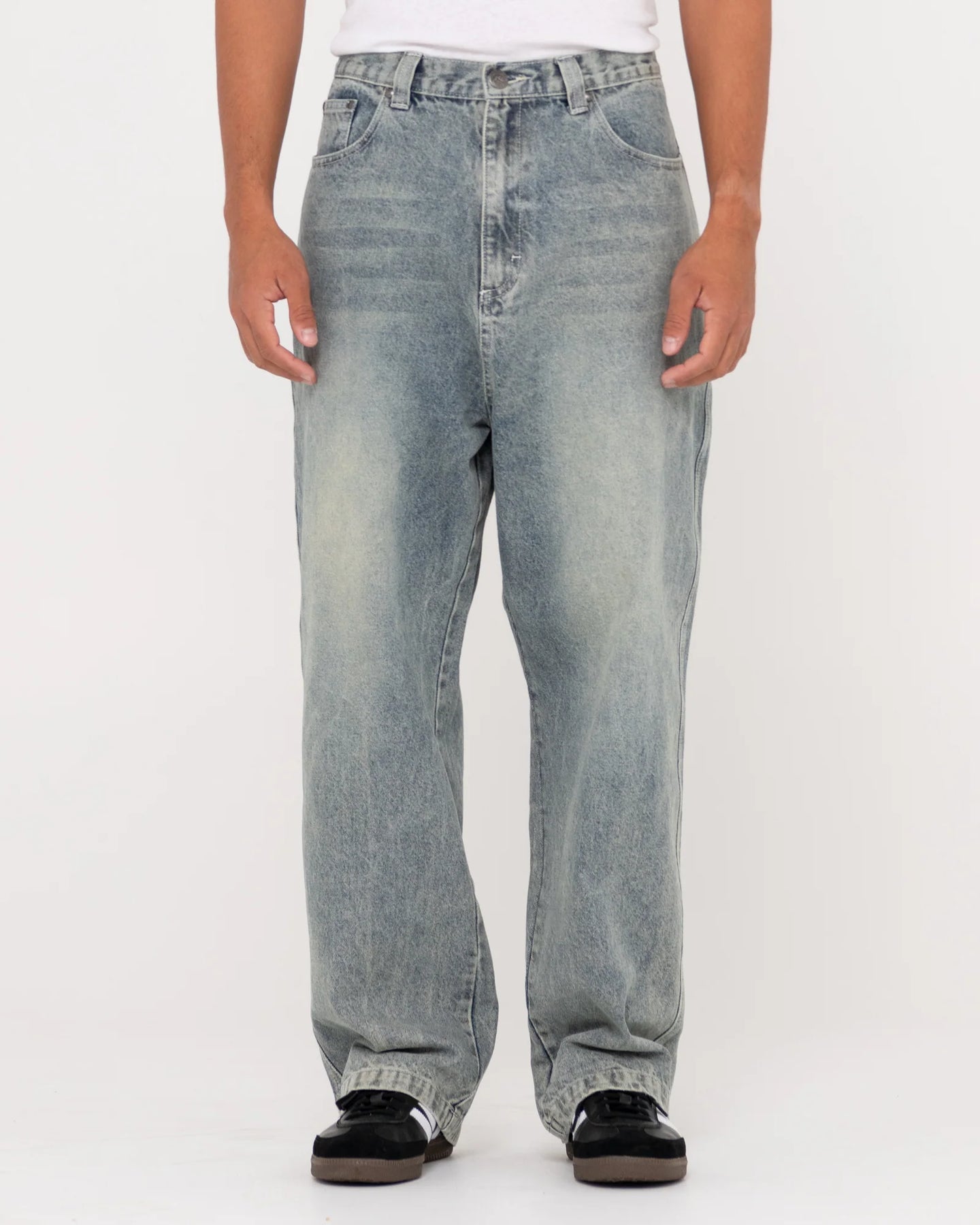 Baggy fit jeans with oversized print on back. Details: 100% Cotton Baggy Fit Rusty Branding